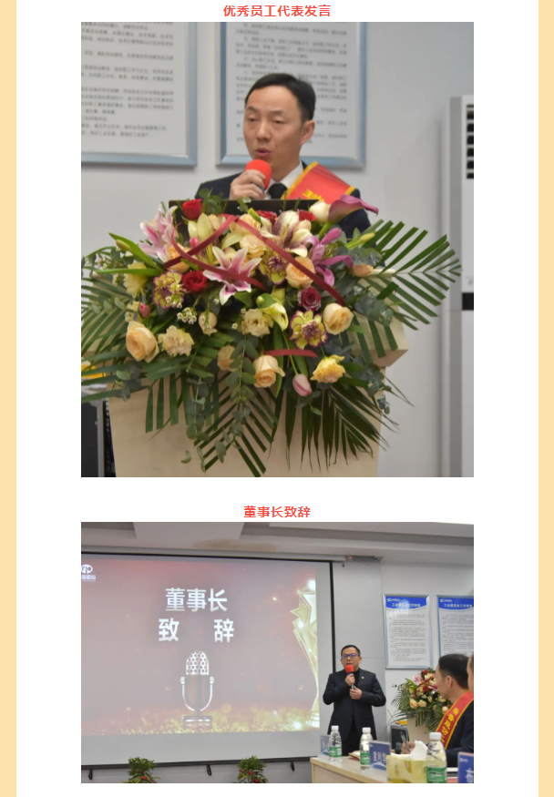 頒獎典禮結束后,由公司總裁黃立志先生致辭,黃總對全體員工表達了由衷感謝,感謝各位員工在過去一年的辛勤付出,并對優秀員工進行了表揚,希望全體員工向優秀員工學習,最后,黃總向大家致以最誠摯的祝福,宣布晚宴正式開始!